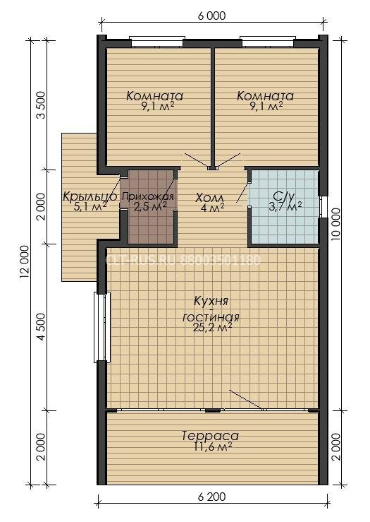 - 6 спальных мест: кухня - гостиная, 2 спальни, санузел