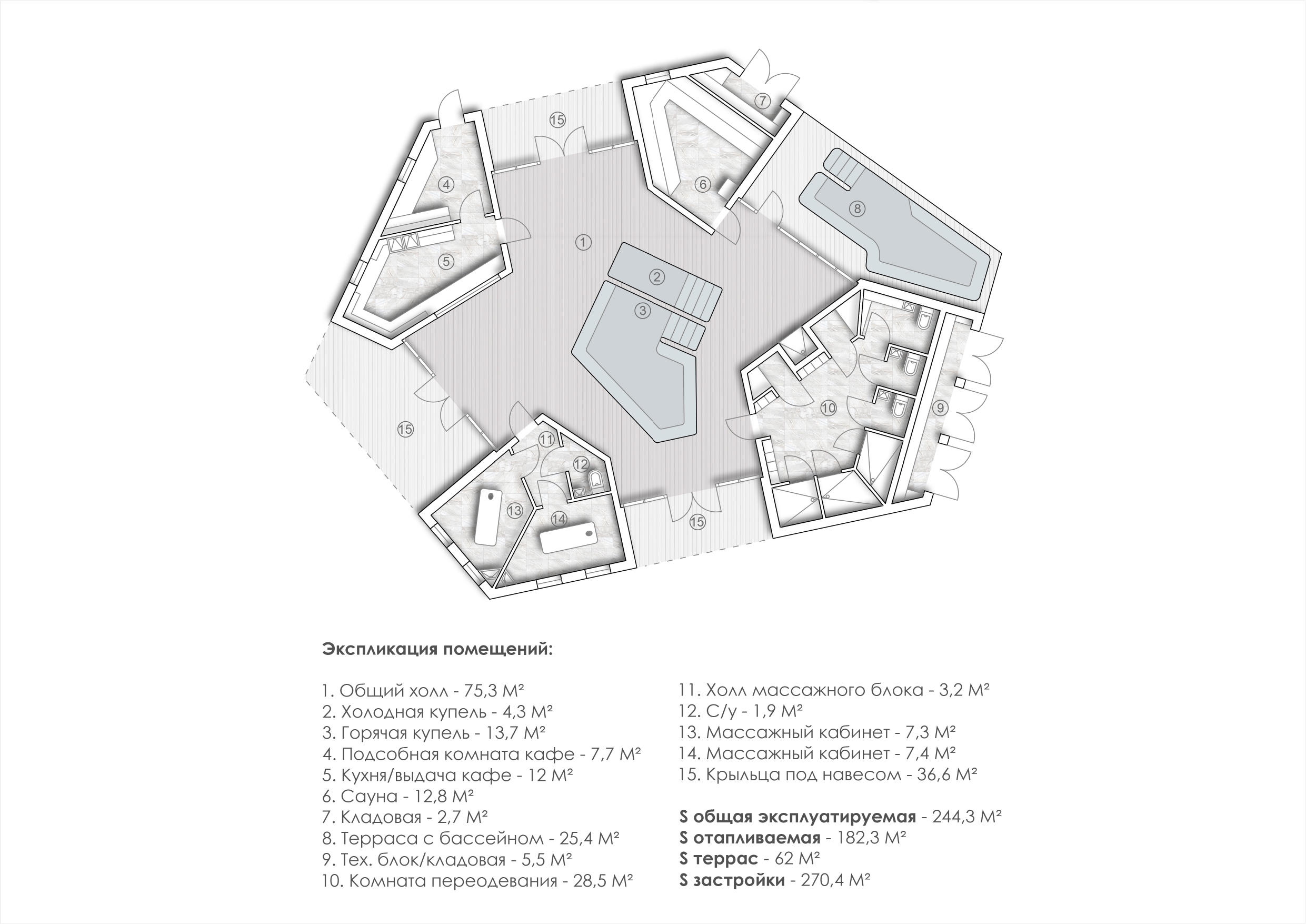 - парная, хамам, комнаты отдыха, помывочная, массажное помещение